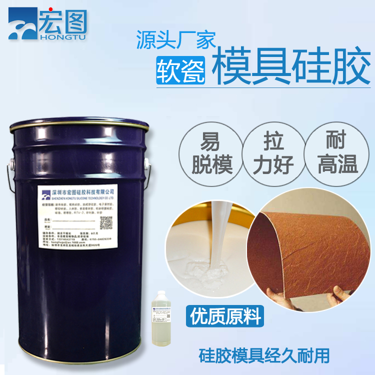 軟瓷模具硅膠也叫雙組份室溫硫化硅橡膠,流動性好,可操作性強,用此類硅膠做出來的模具表面光滑,翻模次數多,硅膠模具使用壽命長久。