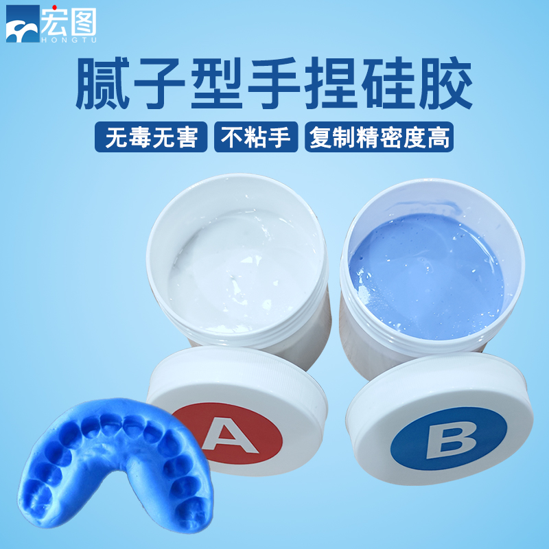 手捏硅膠是雙組份室溫固化硅橡膠,固化前A,B組分為膩?zhàn)有停ㄜ浤酄睿旌虾罂煽焖俟袒袒缶哂幸欢ǖ膹椥院陀捕龋⑶揖哂袠O低的成型收縮性和存儲(chǔ)穩(wěn)定性。利用其方便的可塑性可便捷地復(fù)制出所要空間的形態(tài),得到物體一定空間的仿制體,進(jìn)而可以測(cè)量所需部位的尺寸。對(duì)于那些難以用工具直接測(cè)量的所需部位,利用該材料能方便的完成測(cè)量。